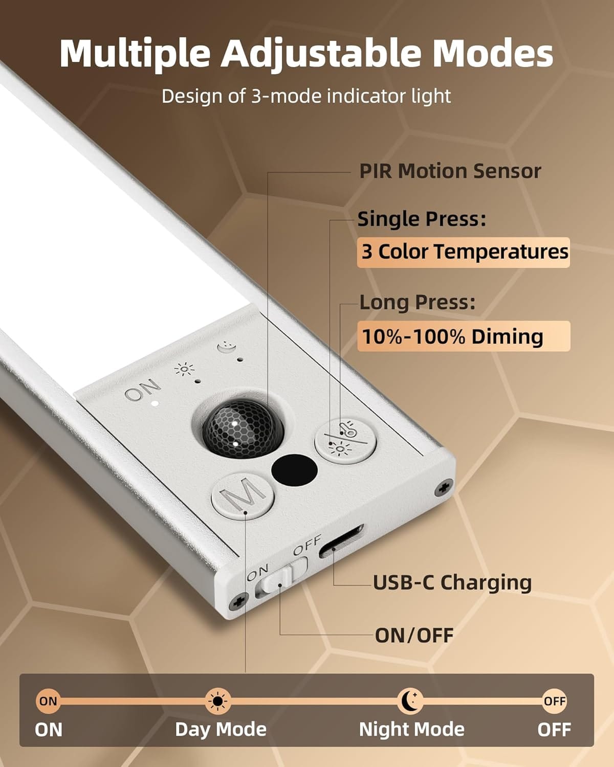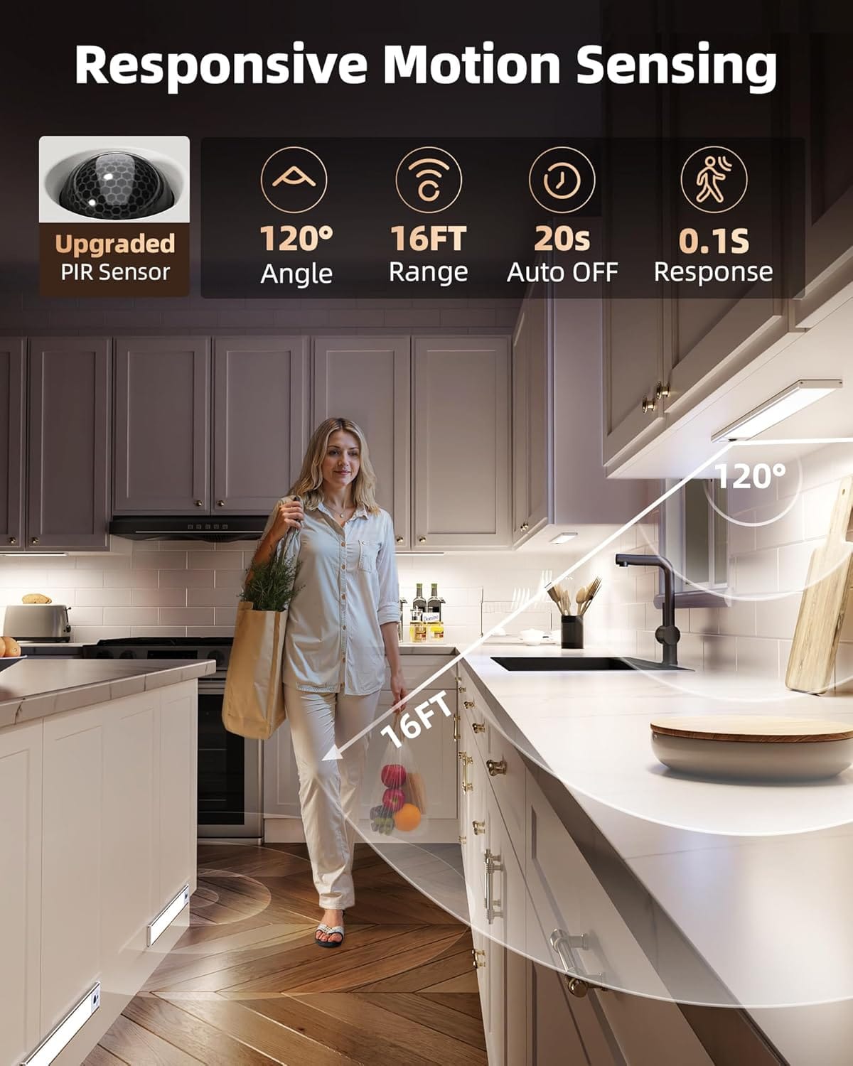Rechargeable Battery Operated Closet Light, Wireless Magnetic Dimmable 6500K Daylight White Under Counter Lights for Kitchen