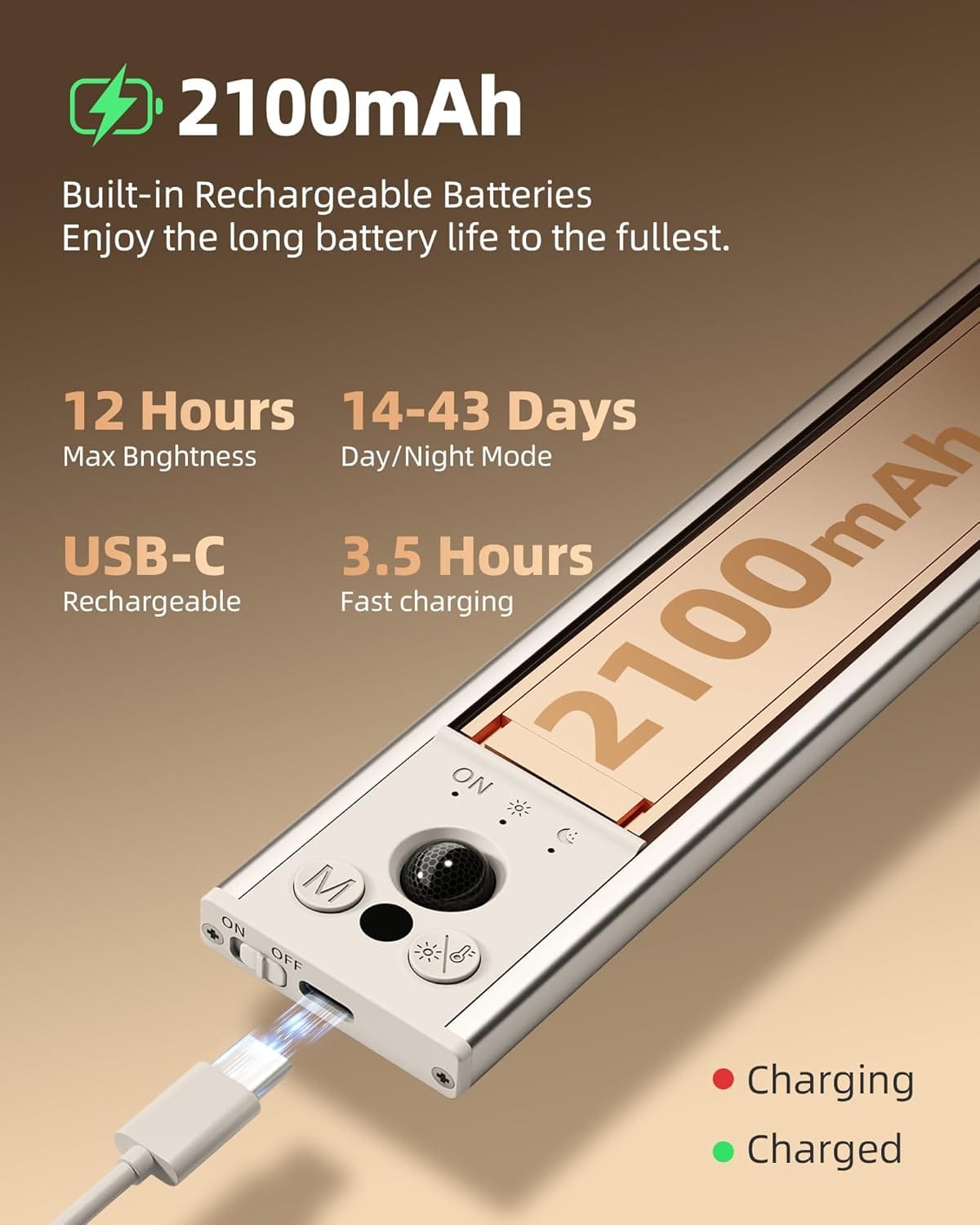 So far I love them. They come on when I walk by or even when the dog walks by. They don’t come on if it’s bright enough in the kitchen. And they hold a pretty good charge. It’s been 3 weeks and haven’t charged them again yet.